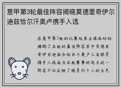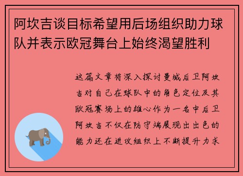 本文将对欧冠周最佳球员评选中的四位球员——DV9(维克托·奥西姆hen)、图拉姆(凯西·图拉姆)、拉什福德(马库斯·拉什福德)与特林康(法比奥·特林康)进行详细的表现解析。这四名球员分别代表着不同的球队,他们在欧冠比赛中的精彩表现使得他们脱颖而出,成为本周的最佳球员候选。在这篇文章中,我们将从各自的技术特点、战术贡献、进攻表现以及对球队的影响四个方面进行分析,揭示他们为何能成为欧冠赛场的亮点。文章...