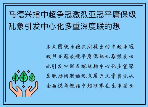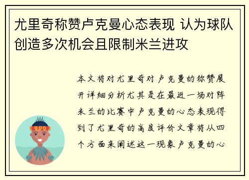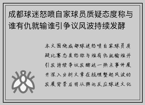本篇文章将以罗马后卫伦施的言论为核心,探讨他在对阵国际米兰(国米)时的心态与策略。伦施在赛前表示,球队在面对国米时必须保持自身的风格,并全力争取三分。这一表态不仅突出了罗马队的竞技目标,也反映了球队对战强队时的比赛策略和精神面貌。文章将从四个方面详细解析伦施的观点,包括:一、保持球队风格的意义;二、全力争取三分的具体策略;三、与国米的比赛特点;四、伦施的个人角色与责任。通过这些分析,读者将能更深入...